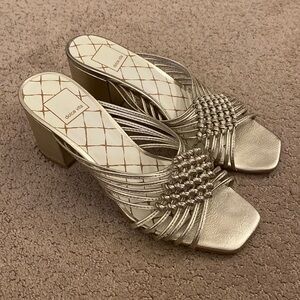 Dolce Vita Gold Slides Size 8 1/2, used condition, some scuffs on heels, please see photos