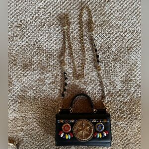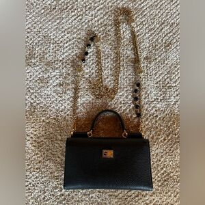 DOLCE & GABBANA Black Leather Miss Sicily Von Embellished Wallet On Chain