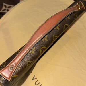 1992 Vintage top handle missing a rivet you can order online and top handle. Either Etsy, Amazon or cobbler. Needs pocket cleaning in zipper pocket. Gorgeous canvas.