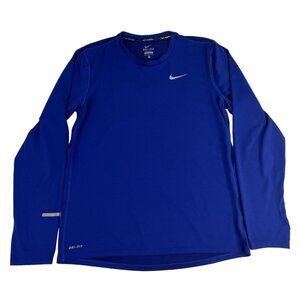 Nike Dri-Fit Mesh Running T-Shirt Men's Size M Royal Blue Long Sleeve Crewneck