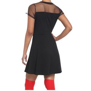 How cute is this skater dress? It features Skelanimal Kit on the front and has mesh detailing across the shoulder area with mesh sleeves.