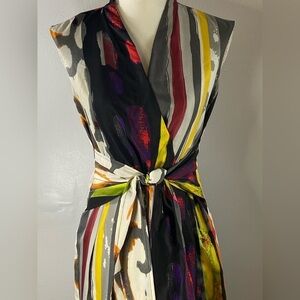 Ellen Tracy Multi Color Front Tie Knee Lenth Dress Size 4 EUC SKU0667