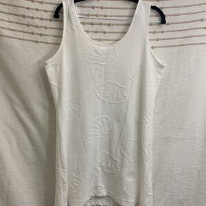 Swim Cover Up Size Small/Medium White with Embossed Shells Pit to pit measures 18"