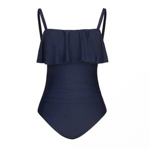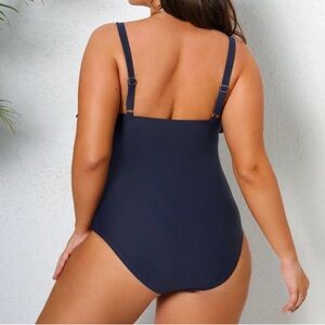 New CUPSHE Ruffled One Piece Swimsuit OX Navy Blue Maillot Plus Size NWT
