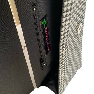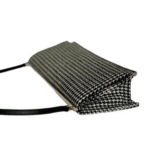 Exterior Houndstooth Fabric is Wool/Polyester Blend, Interior Lining is Polyester. Strap is Leather.
