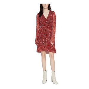 BLACK HALO Womens Red Belted Long Sleeve Knee Length Sheath Dress 12