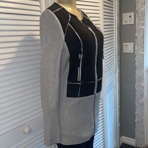 Beautiful, black and gray I.N.C zip up sweater. Sherpa lined inside. Has 2 zipper pockets. In EUC