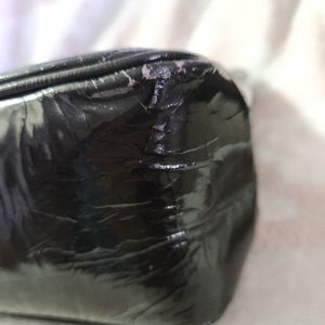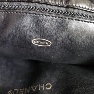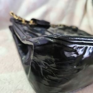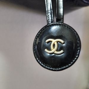 COA Vintage Black Quilted Patent Leather Chanel Tote.