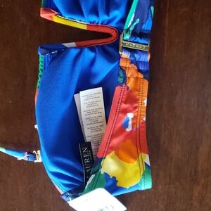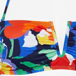 NWT Lauren Ralph Lauren Blue Bold Abstract Floral V Wire Bandeau Bikini Top 6