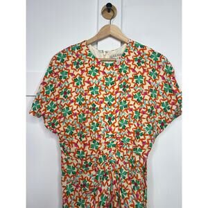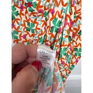 NEW Saloni Scoop Neck Ruched Tiered Marta Short Sleeved Midi Dress Sorel Orange