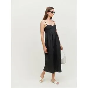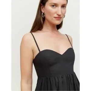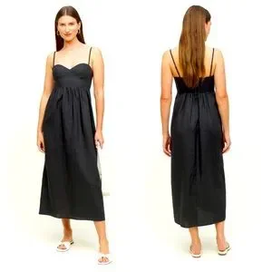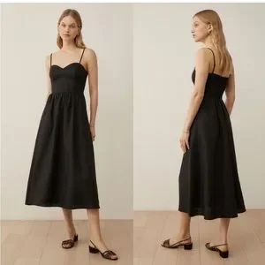 Reformation Odette Black Linen Midi Dress 2 NWT