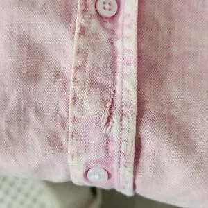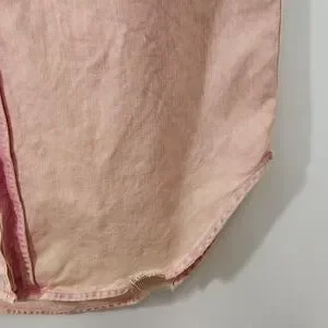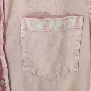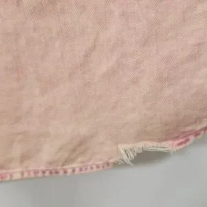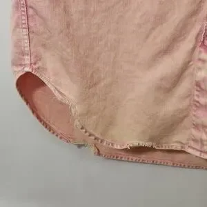 This is an acid washed pink finish. It has manufactured distressing such as color variations, frayed hems and edges, etc. I've included as many photos of the distressing as I can.