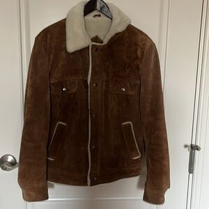 Zip fly with button closure. The pants have a shiny wet look to them catching the sun light beautifully. Tailored fit. Some minor fraying one inside seems, example shown in last photo. In excellent used condition.