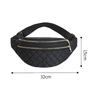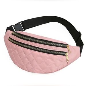 Plaid designed, solid pink, waterproof waist bag or purse. Includes two zipper pockets and black adjustable snap strap. Can be worn over over chest, belly, or flipped over back. 15cm x 32cm.