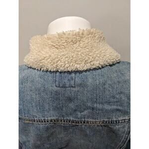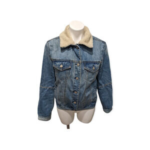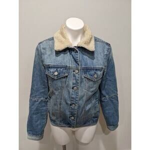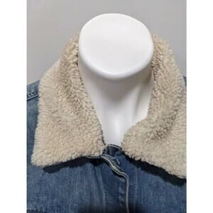 Kensie Womens Size Small Denim Jacket Medium Wash Faux Sherpa Collar Pockets