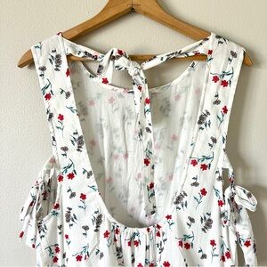 NWOT Asos White Floral Mini Prairie Dress w/ Open Back, Side Bow Ties, & Gathers