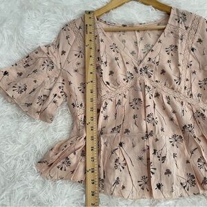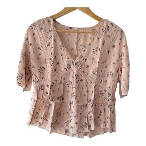 Melrose And Market Floral Babydoll Top Womens Small Petite Blush Short Sleeve