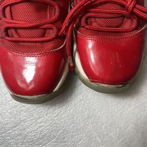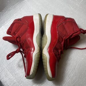 Step up your game with these Nike Air Jordan 11 Win Like 96 sneakers in red. Designed for boys with a shoe size of 5.5 US / 5 UK / 38 EU and a moderate cushioning level, these athletic shoes are perfect for travel, activewear, and casual wear. The lace-up closure and mid-top shoe shaft style provide a comfortable fit, while the rubber outsole and cushioned insole with arch support offer outstanding performance and breathability.