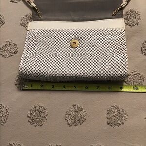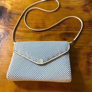 Whiting and Davis Metal Mesh White Shoulder Crossbody Bag Purse.