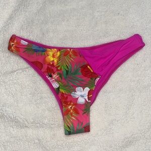 - Cheeky colorblock pink and tropical pattern bikini bottom. Never worn, hygiene liner still attached.