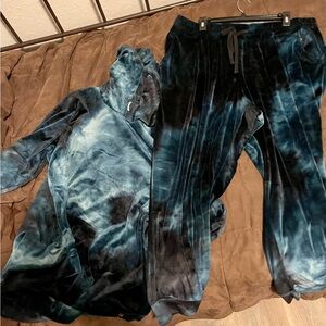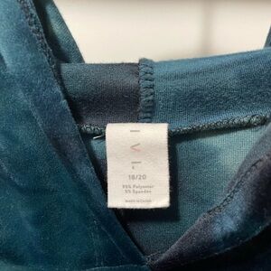 LIVI velour top and bottom. 18/20. Gorgeous dark blue and green. So comfy. Dress up or down.