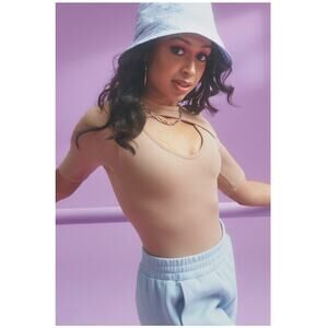 Fabletics Finley Cutout Seamless Desert Nude Beige Bodysuit Size Small