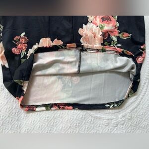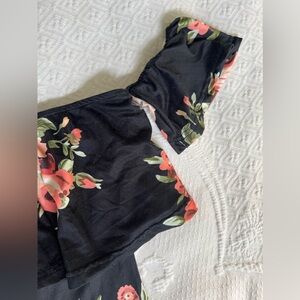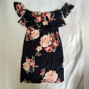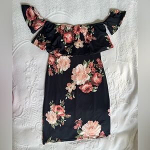 Vintage Off-the-Shoulder Sleeve Dress Black/Rose Floral Women’s Size Small