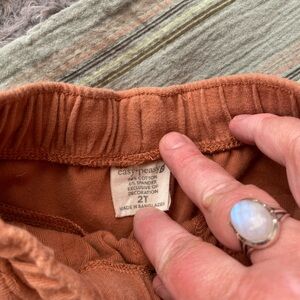 Easy Peasy Romper and Shorts. Sage Green/Burnt Orange. Romper-24M, Shorts-2T.