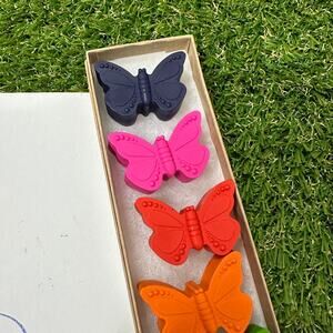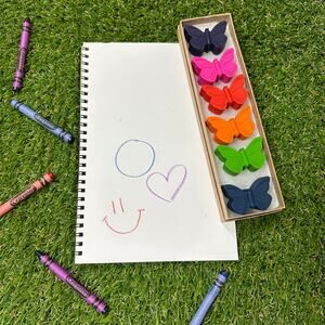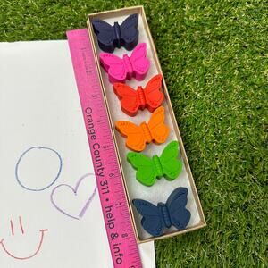 Butterfly Crayons (6), Kids Boys Girls, Pretty Unique Colorful Birthday Gift, End of School, Start to Summer, Brights Colors Let creativity run wild and free with this set of 6 Butterfly Crayons in Brights Colors. Each crayon is handcrafted using non-toxic materials, ensuring safe and colorful drawing for kids of all ages. Set of 6 Crayons Brights Colors - Orange Red, Pink, Blue, Purple, Bright Green, Yellow Orange Only Crayola crayons are used for quality and consistency. Gift Box Included See measurements in photos If you have a bulk request, please message me. Instagram @AllGoodColors Get 20% off 2+ items with code BUNDLE