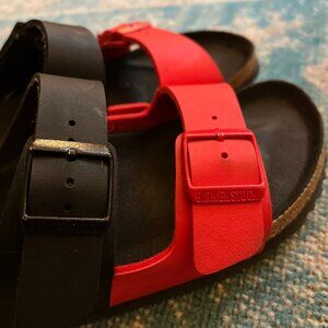 Birkenstock Arizona *Black & Poppy Red* Split Color / 36 N / Birko-Flor / EUC
