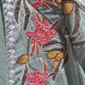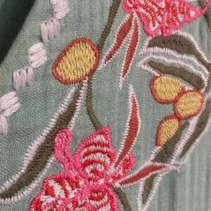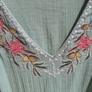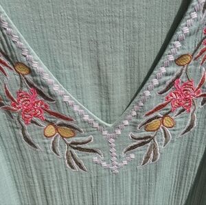Year round beach dress made of 100 % gauze, this dress features embroidered V neckline, bell sleeves and long slit sides.