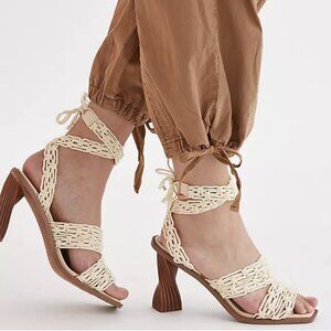 NWT 1. State Off Shoulder Strappy Balloon Sleeve Blouse in Porcelain Blue