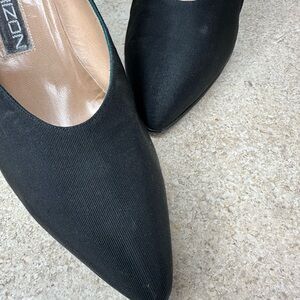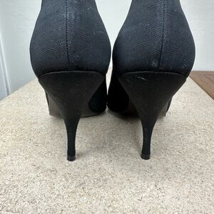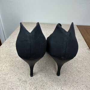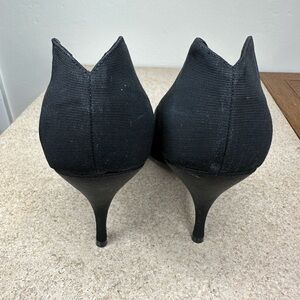 Beautiful black fabric heels by Maud Frizon Paris. Made in Italy. There are some wrinkles and flaws on fabric, but the shoes appear to have never been worn or just worn indoors. Please message me with any questions!