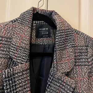 Cotton on trench coat. No rips or tears. Good condition
