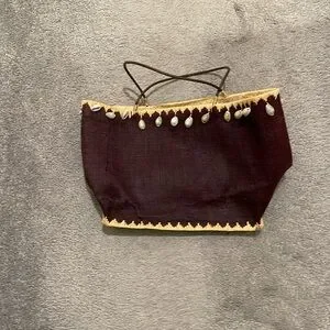 Talbots straw tote bag brown with seashell and tan trim
