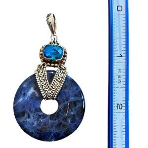 Large Lapis and Blue Topaz Slide set in 925 Sterling (NOTE: NO CHAIN)