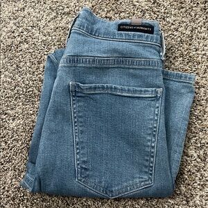 This one has an iron singe on the front underneath the bib detail that is pictured. In person the spot just looks shiny, and isn’t visible if you’re wearing the shirt underneath a cardigan or sweater