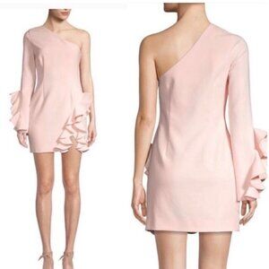 - Mini dress featuring a sweetheart neckline, long puffed sleeves, and a tie detail at chest.