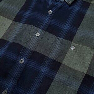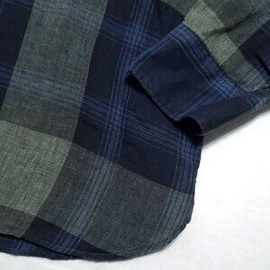 TODD SNYDER Men's Large Made in Portugal 100% Linen Plaid Button Up Shirt