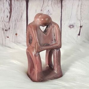 Vintage 90s Soapstone Sculpted Couple Wedding Marriage Newlywed Pink Figurine 4"