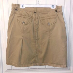 Womens Gloria Vanderbuilt size 12 Khaki Skirt. Two Front/Back pockets with metal buttons. Very soft, comfortable material with a little stretch. Good pre-owned condition with no flaws. Smoke-Free Home (66B)