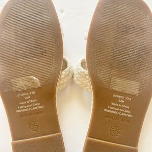 Size 5.5Ivory Upper material: Faux leather outsole material: Synthetic Braided detail accent strap Flat heels Comfy and relaxed