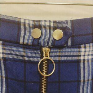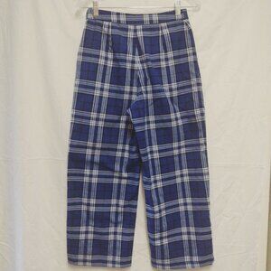 URBAN OUTFITTERS Ladies 4 Ankle Pants w/ Exposed Front Zipper Blue Plaid Y2K
