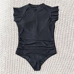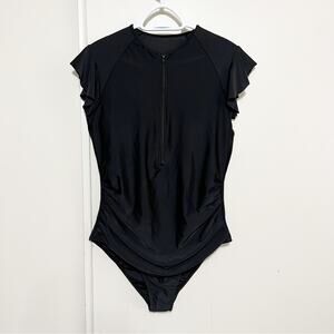 New Amazon Flutter Sleeve Rashgaurd Swimsuit Size XL Black