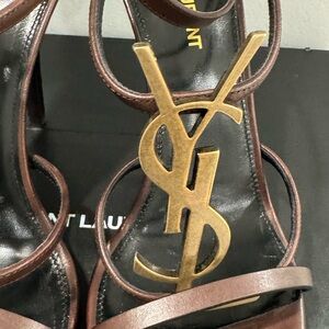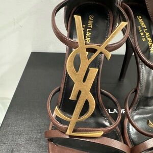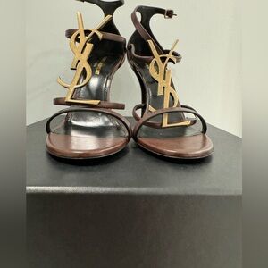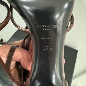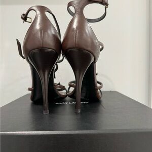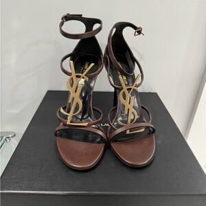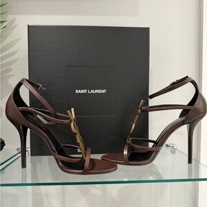 Authentic Yves Saint Laurent YSL Cassandra Brown Leather High Heel Sandals Sz 39.5 NEW comes with box and dust bag.