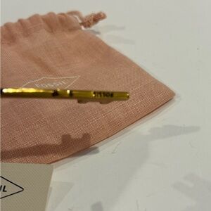 Fossil NWT Sofia Keychain in Brass Gold with Leather Trim with Dust Bag. Color is a darker Gold.