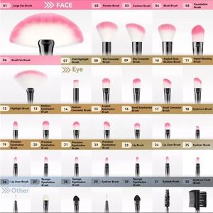 32 Piece Pink Makeup Brushes for Face Lips Eyebrows Foundation Soft Makeup Tools