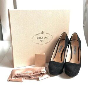 Prada Nero Camoscio Basic Platform Pumps