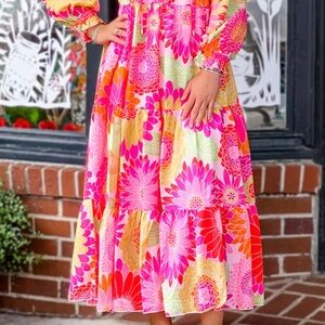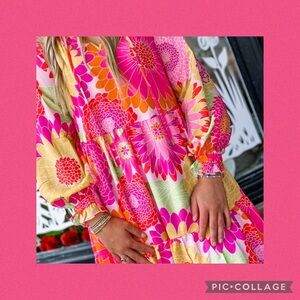 What a beautiful burst of colors! This long sleeve Leilani dress from J. Marie is sure to turn heads with its bold, eye-catching print!
