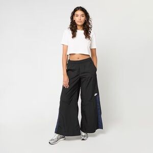 Pair this crop top with your favorite high-waisted jeans or maxi skirt.Blue ribbed crop tee with rounded neckline and cap sleeves. Features distressed graphic, puff print logo, and contrast stitching. Model is 5'9 and wearing size Small. Hand wash in cold. 58% Cotton, 35% Modal, 7% Spandex.
